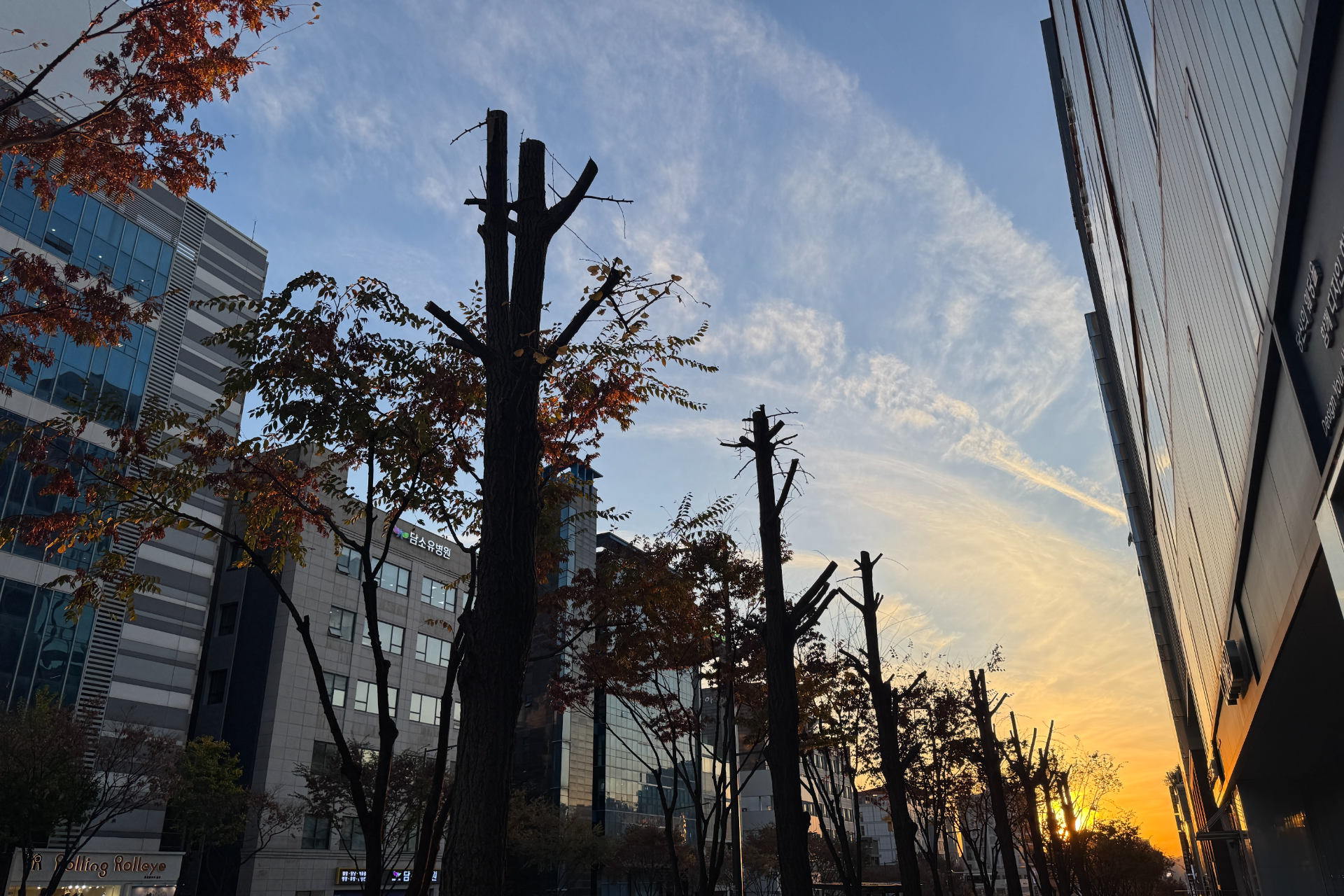 은행나무는 아름다운 노란색 잎으로 가을을 수놓지만, 그 열매에서 나오는 강한 냄새 때문에 주민들에게 민원이 많이 들어오기도 합니다. 그래서 많은 도시에서 은행나무 열매 냄새를 줄이기 위해 가지치기나 열매 수거 작업을 진행하는데, 이번에 제가 본 나무도 그 일환이었겠죠. 냄새 문제를 해결하기 위한 고육지책이었을지도 모릅니다.