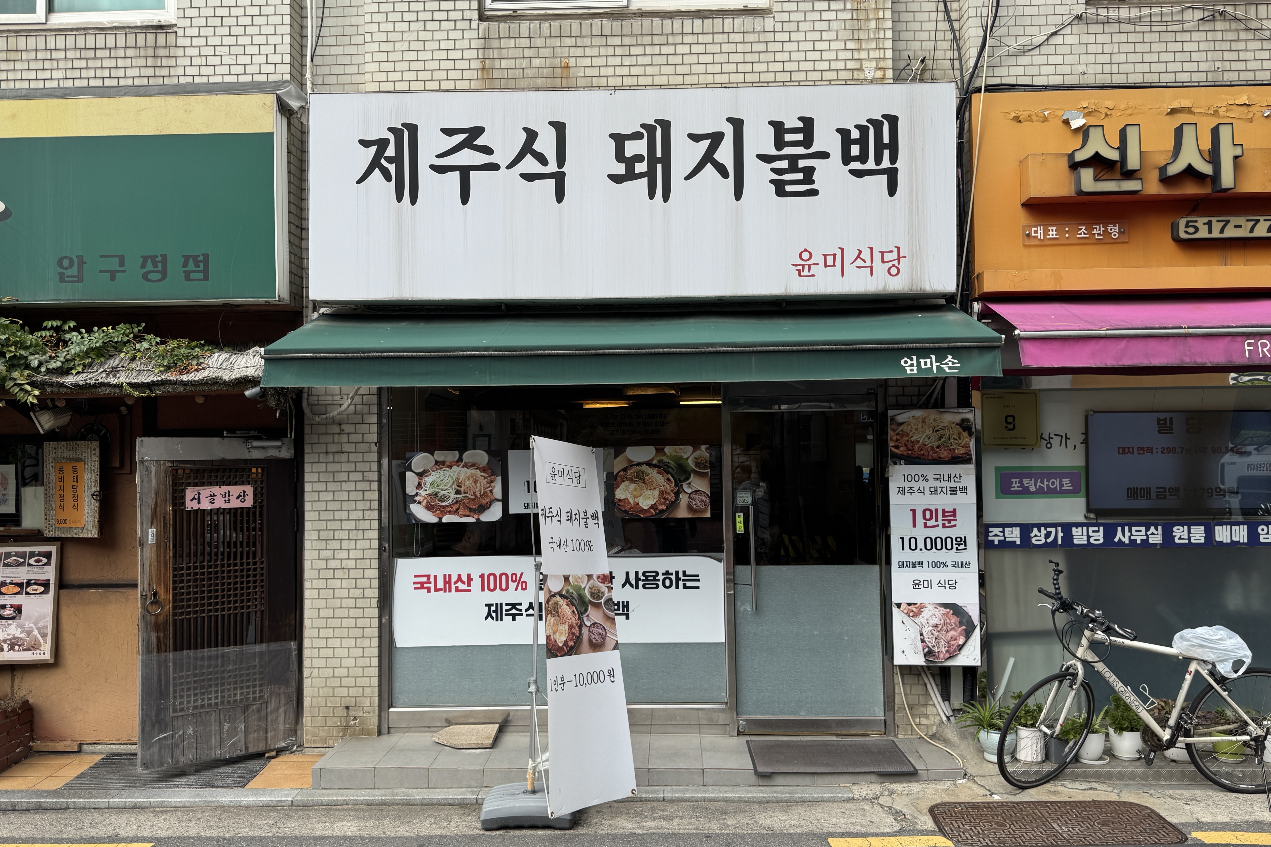 고기가 제주도에서 온 건지 확인은 할 수 없지만 간판이 '제주식 돼지불백'이다. 이곳 식사류는 딱 제육볶음만 있다. 보통 단일 메뉴로 음식을 내는 식당은 컨셉이거나 이 음식에 자부심이 있는 경우인데, 이 집은 확실히 후자다.